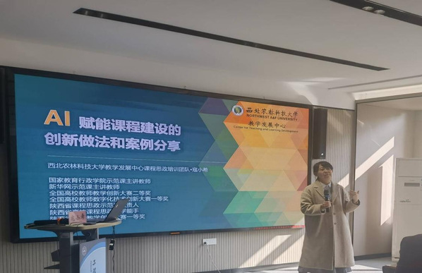为推进实施数字化赋能教师发展行动,深化教育教学改革,提升教师数字化教学能力及智慧课程建设水平,10月30日下午,免费成人影片 与教育研究与评估中心(教师发展中心)联合举办AI赋能课程建设专题培训会,邀请西北农林科技大学寇小希副教授作《关于AI赋能课程建设的创新做法和案例分享》讲座。培训会由副院长丁凯主持,来自免费成人影片 及其它免费成人影片 共70余名教师参加了培训。